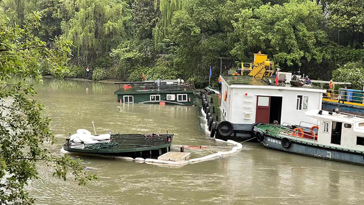 船只没入运河 杭州艮山门轮渡码头附近通航受阻
